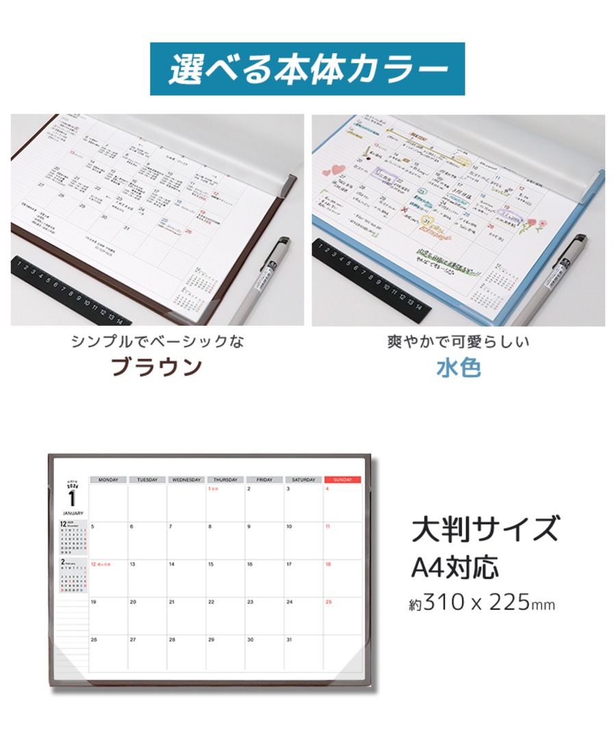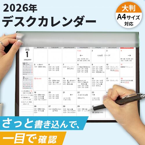 2026カレンダー A4サイズ デスクプランナー 書き込める カレンダー 1月始まり 月曜始まり 令和8年 手帳 スケジュール帳 月間 卓上 大判 持ち運び便利 2026年 (ojr-2025calendar)