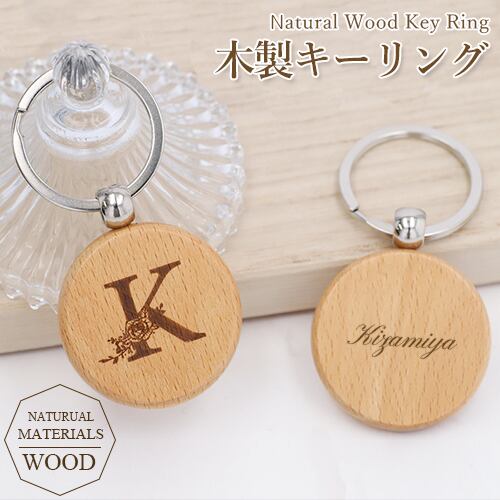 キーホルダー イニシャル 記念品 名入れ プレゼント おしゃれ 刻印無料 送料無料 木製 キーリング ウッド 卒団記念品 卒業 卒部 プチギフト (7c-acx-na-069kr)