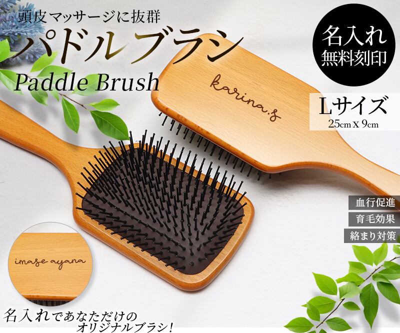 ヘアブラシ 名入れ プレゼント Lサイズ 【名入れ無料】 【送料無料】 頭皮 高級 パドルブラシ ヘアケア ブラシ くし 女性 レディース 髪 ツヤ 艶 サラサラ ギフト 誕生日 ポーチ クリーナー付き (7c-kctr-ka-paddlebrush-l)