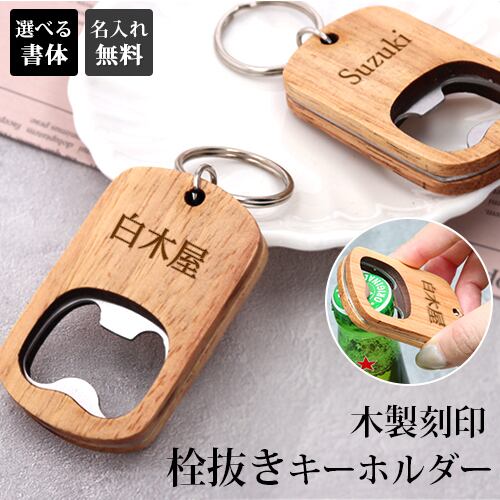 栓抜き ボトルオープナー 栓抜きキーホルダー 名入れ 名入れ無料 刻印 ショップ お店 ウッド 蓋 キャップ キッチン用品 雑貨 持ち運び 携帯 お酒 ドリンク 瓶ビール 父の日 母の日 プチギフト (7c-na-rcx-002opnr)