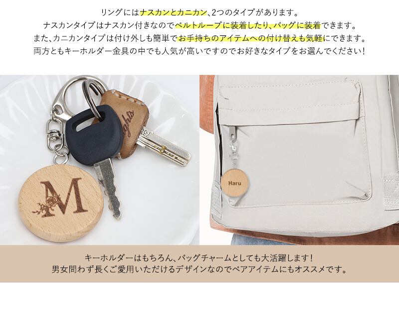 イニシャル キーホルダー キーリング 2タイプ ナスカンタイプ カニカンタイプ aruon 名入れ工房 (7c-nrx-na-072kr)