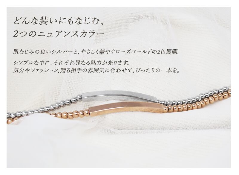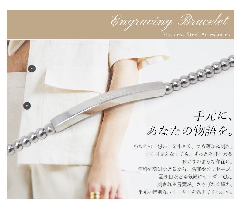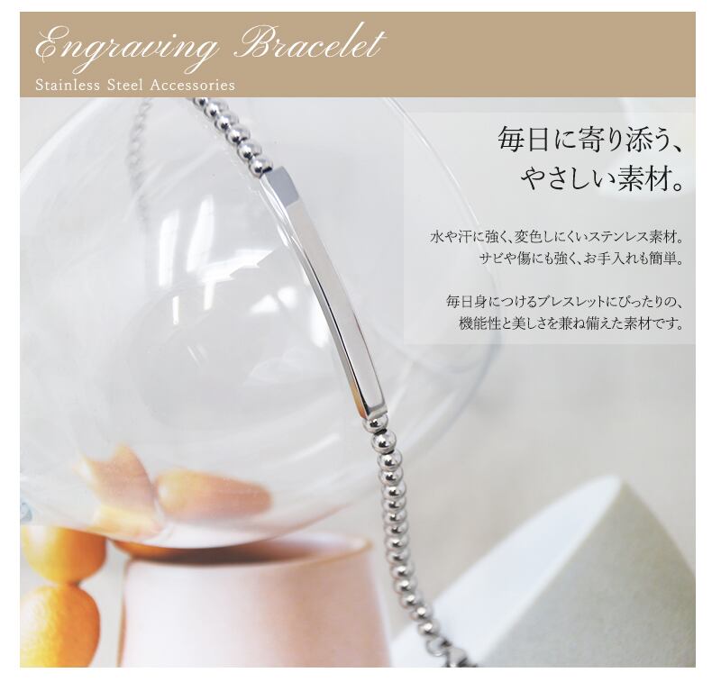ブレスレット レディース 刻印 名入れ シルバー ローズゴールド ステンレス ボールチェーンブレスレット (7c-nxxx-025b)