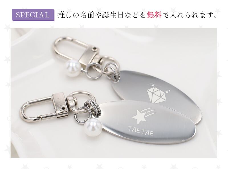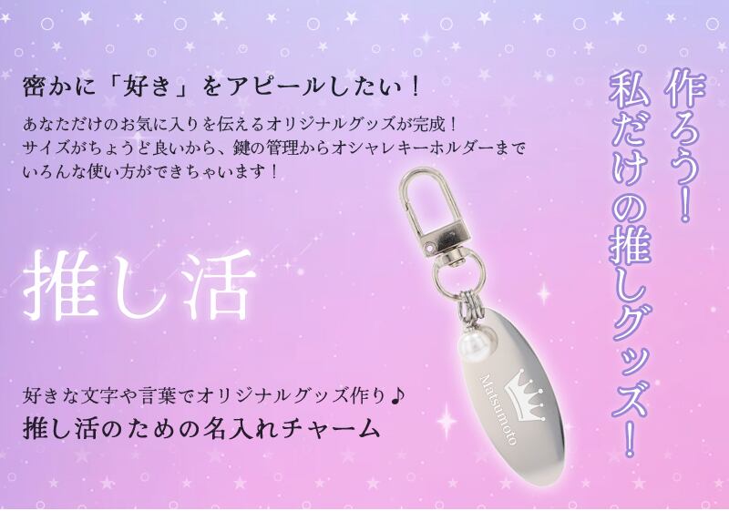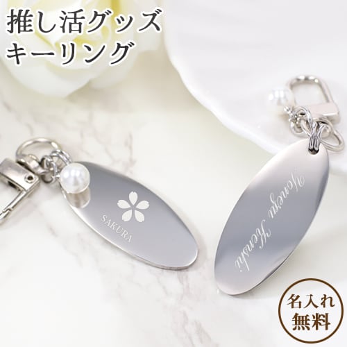 推し活 キーホルダー パール 推し活グッズ 名入れ プレゼント ネームタグ キーリング チャーム ネームプレート 名前入り 鍵 バッグ用 サブバッグ用 リュック用 贈り物 (7c-oshi-028kr)