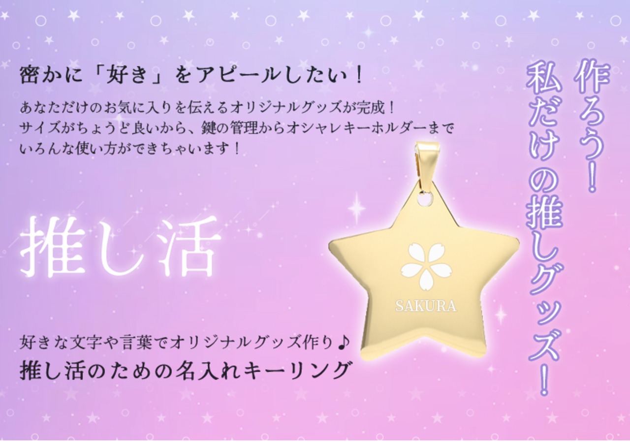 推し活 キーホルダー 推し活グッズ 星 スター 名入れ プレゼント ネームタグ キーリング チャーム ネームプレート バッグ用 名前入り 贈り物 (7c-oshi-059kr)