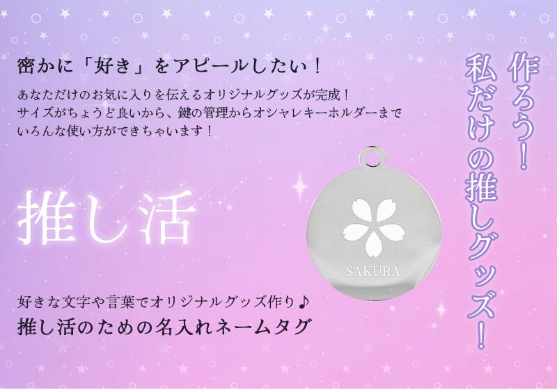 推し活 ネームタグ 推し活グッズ 名入れ キーリング チャーム ネームプレート 推しカラー メンカラ 誕生日 贈り物 (7c-oshi-tag-4type)