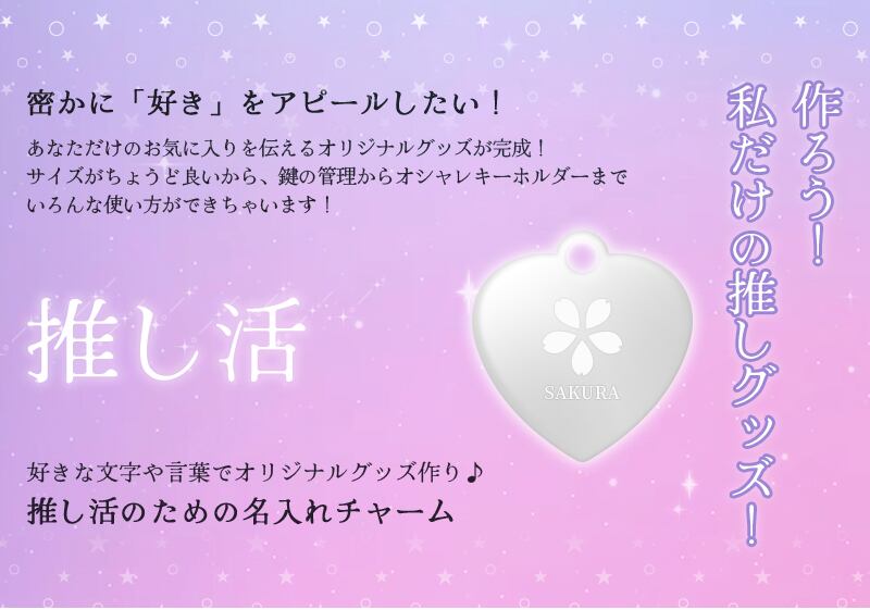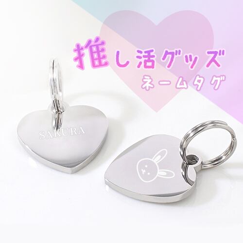 推し活 キーホルダー 推し活グッズ 名入れ プレゼント ネームタグ キーリング チャーム ネームプレート バッグ用 名前入り ゴルフバッグ用 サブバッグ用 リュック用 贈り物 (7c-oshi-tag-heart)