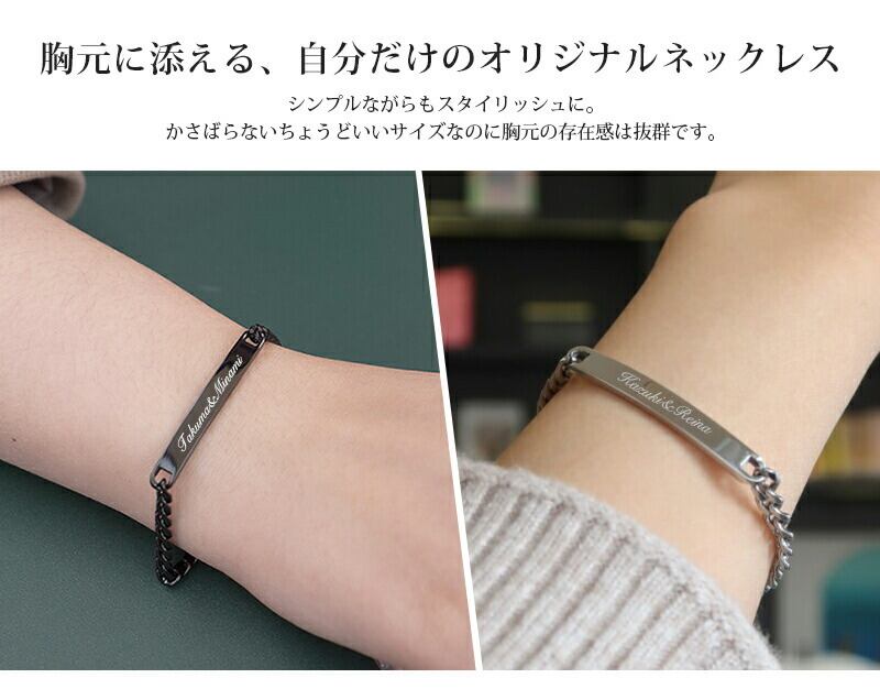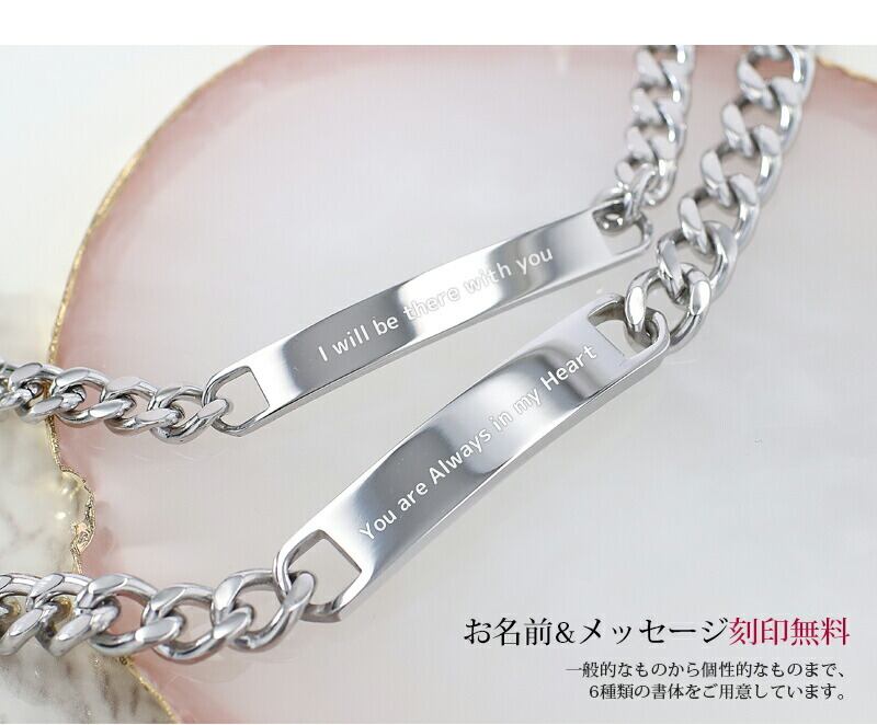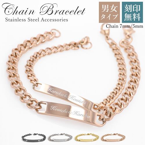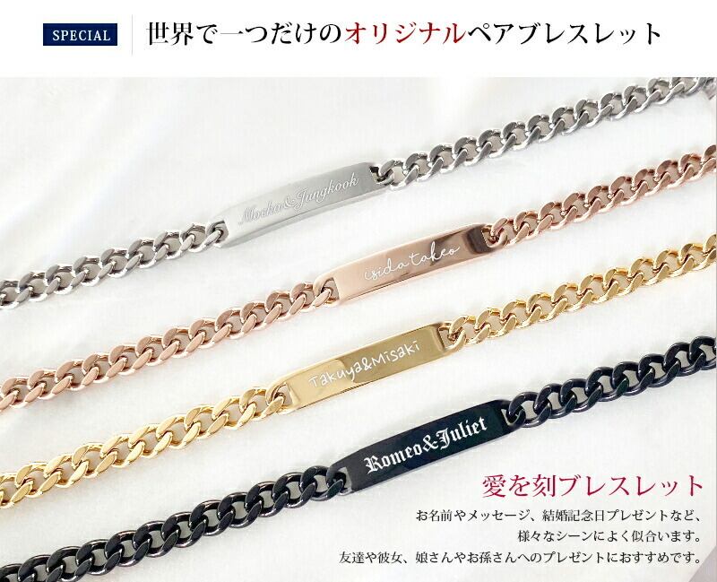 刻印ペアブレスレット チェーンブレスレット【名入れ無料】3カラー 喜平チェーン シンプル シルバー ブレスレット 刻印可能 レディースブレスレット aruon 名入れ工房 (roryxtyle-7c-kcxx-na-020b-set)