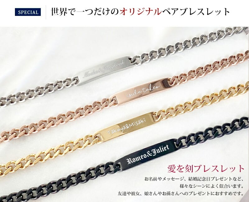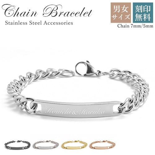 刻印ブレスレット 2サイズ チェーンブレスレット【名入れ無料】3カラー 喜平チェーン シンプル シルバー ブレスレット 刻印可能 レディースブレスレット (roryxtyle-7c-kcxx-na-020b-single)