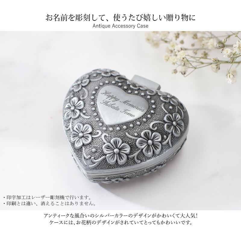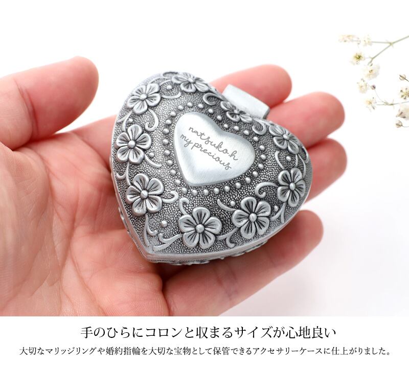アンティーク調 刻印 ジュエリーケース 指輪ケース ヨーロピアンスタイル 宝箱 保管 結婚指輪 中世風 リング収納 ハート型 アンティーク メッセージ入り aruon 名入れ工房 (roryxtyle-7c-kixx-na-jewcase005)