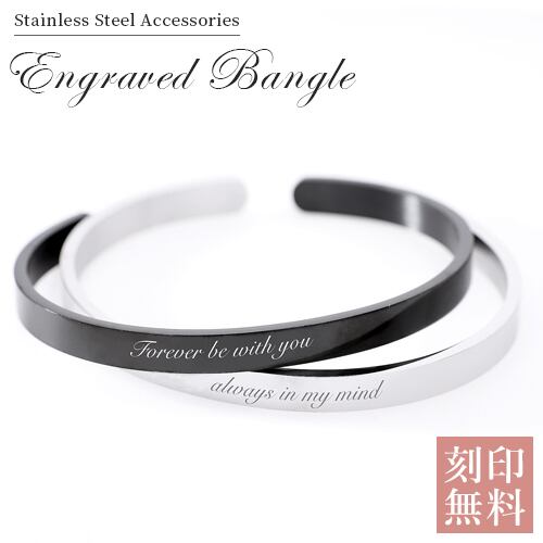 ブレスレット 刻印 名入れ バングル ブラック シルバー 名入れプレゼント ギフト プレゼント 誕生日 (roryxtyle-7c-kkrn-na-015b)