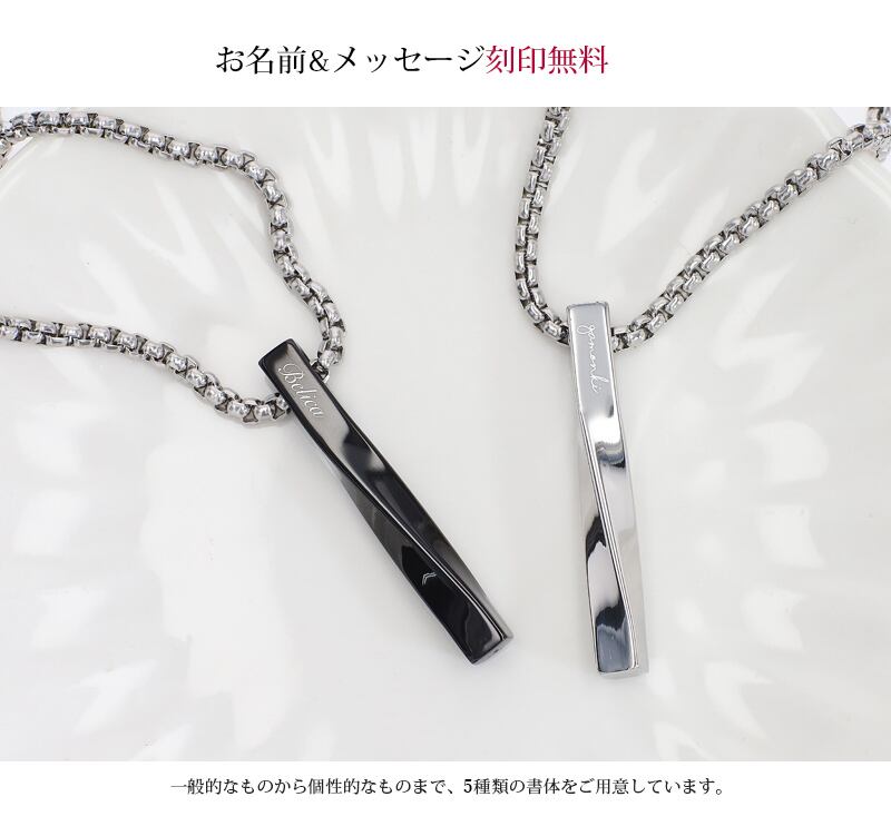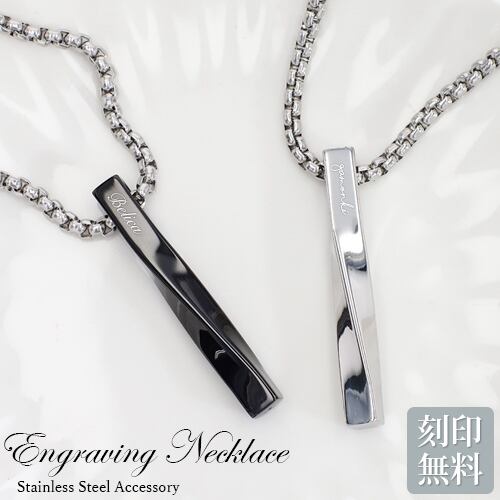 刻印 ひねり ネックレス 文字入れペンダント 名入れ無料 名入れ ステンレス 男女兼用 ペンダントネックレス 小豆チェーン 2色 シルバー ブラック 大人 刻印 シンプル 女性 贈り物 ネーム aruon 名入れ工房 (roryxtyle-7c-knxx-na-057n)