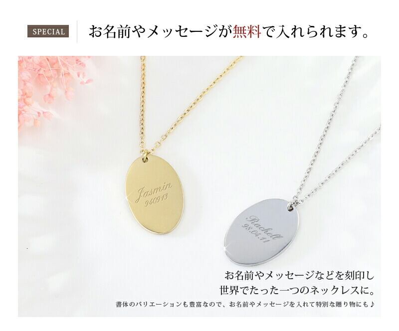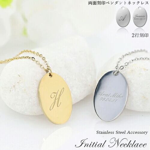 イニシャル ネックレス 両面刻印 オーバル ネックレス 2色 【名入れ無料】ステンレス (roryxtyle-7c-kuap-na-009n-2line)