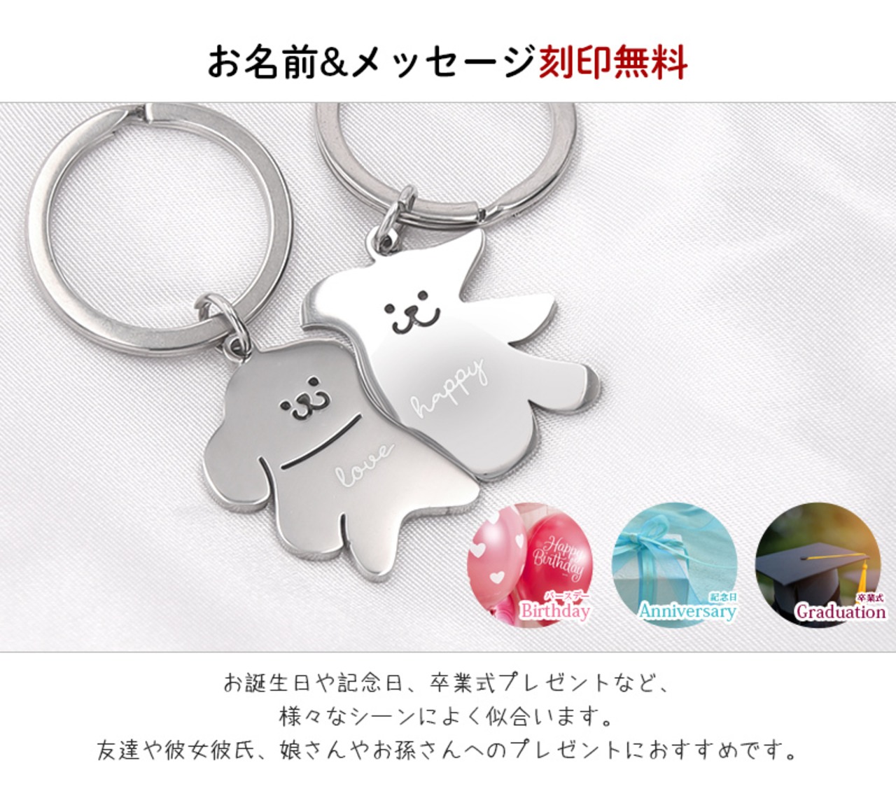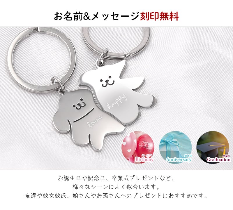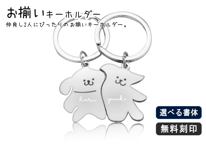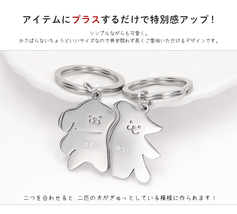 名入れ プレゼント キーホルダー【名入れ無料】ペアキーリング 犬キーリング キーリング バッグチャーム イニシャル ステンレス シンプル 刻印無料 家族 夫婦 姉妹 兄弟 アクセサリー ネーム