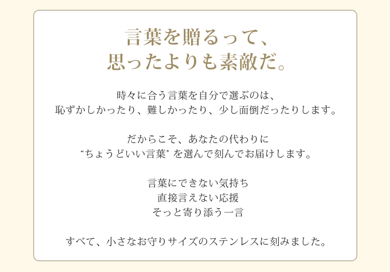 ランダムで一言メッセージを刻印してお届けいたします。
