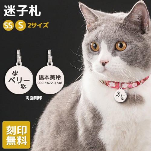 迷子札 SS・Sサイズ ペット 錆びない ステンレス素材 名札 犬 猫 わんちゃん リング2個付 サークル型 迷子防止 IDタグ ステンレス ネームタグ 首輪 名前 オリジナル 小・中型犬用 イヌ お名前&電話番号刻印 飼い主【名入れ工房 きざみ屋】KIZAMIYA (roryxtyle-7c-nxx-cat-tag)