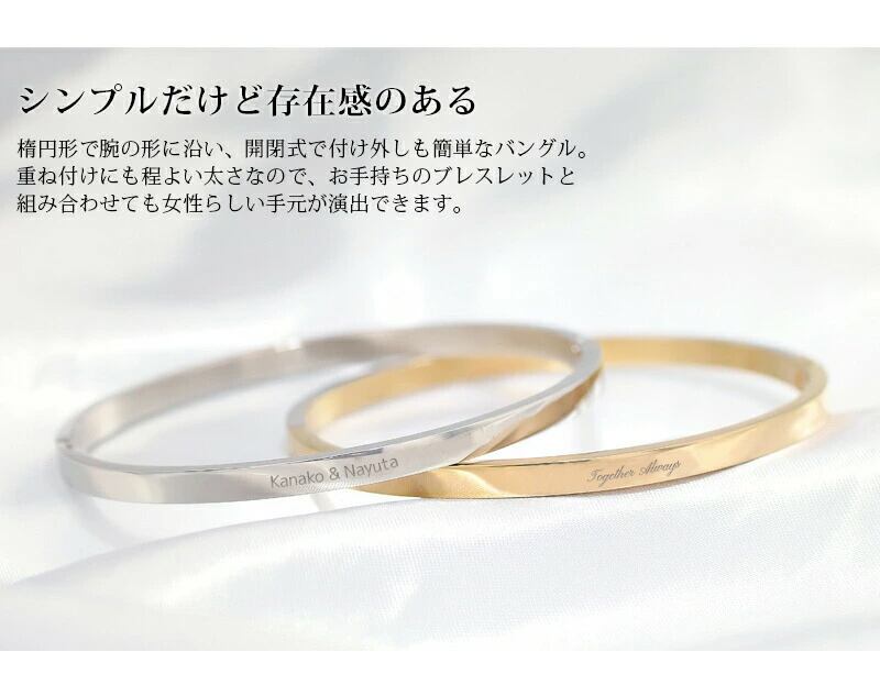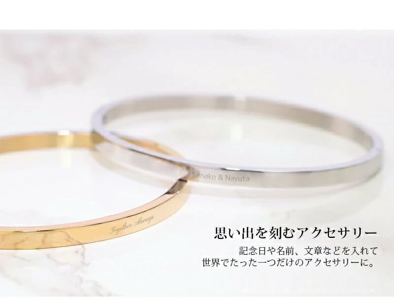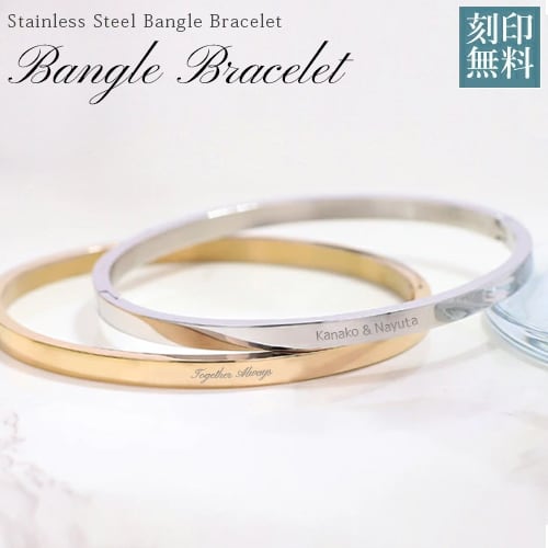 刻印ブレスレット バングル【名入れ無料】 ステンレスバングル 2カラー ゴールド シルバー 刻印無料 ブレスレット 名入れ工房 きざみ屋 KIZAMIYA(ojr-kxix-2color-bangle)