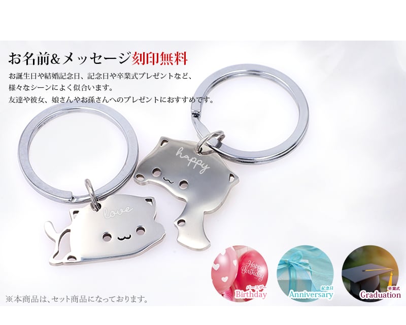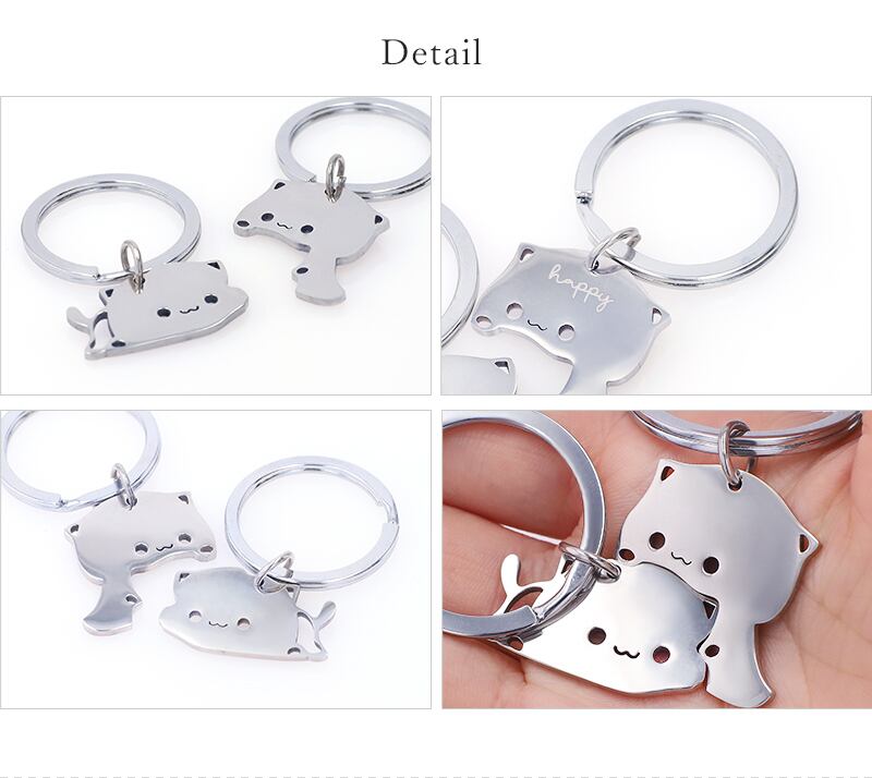 名入れ プレゼント キーホルダー【名入れ無料】ペアキーリング 猫キーリング キーリング バッグチャーム イニシャル ステンレス シンプル 刻印無料 家族 夫婦 姉妹 兄弟 アクセサリー ネーム (7c-nrk-082kr)